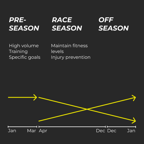 This is where the bulk of the physical training is done in preparation for the upcoming season, sometimes guided by regulation changes. For example, in 2009, with the introduction of the KERS system some cars were overweight (including ours). Most coaches had to reduce driver weight to avoid losing valuable time on the track. Given that drivers typically operate at very low body fat levels (around 11–12%), reductions required careful sacrifice of lean muscle mass, balancing weight loss with the maintenance of strength and endurance.