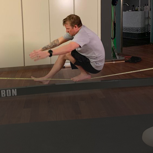 Joint stabilization formed a fundamental component of our functional training program. This could be progressed across multiple levels of difficulty — in the picture, Kimi performs pistol squats on a slackline. Each exercise independently challenges neuromuscular control, but in combination they provide an advanced stimulus for ankle and hip stability, mobility, strength, and proprioceptive balance.